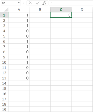 エクセルで1が2回以上連続した回数をカウントする場合の数式を教えて Yahoo 知恵袋