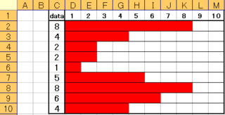 エクセルで数字の数だけ升目を塗りつぶしてグラフ風にしたいのですが どなたか教え Yahoo 知恵袋