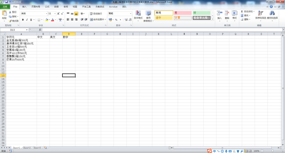 如何用vba分离excel单元格中字符串里的汉字 字母 数字