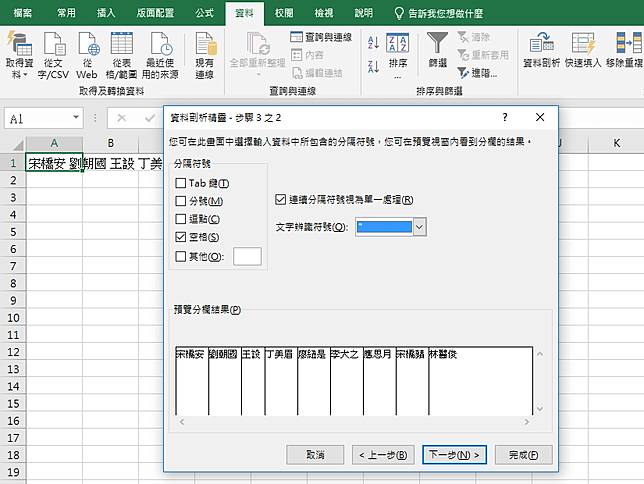 Excel 資料剖析 將文字分割至不同的儲存格 Youtube