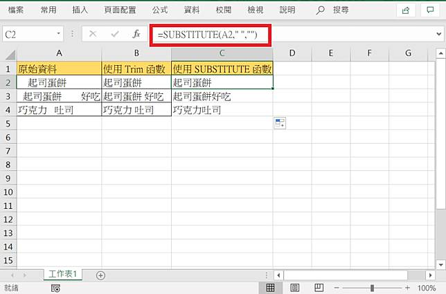 Excel Trim 與substitue 函數 自動去除多餘的空白字元 俞果3c Line Today