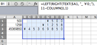 Excel 桁数の違う 1文字ずつ