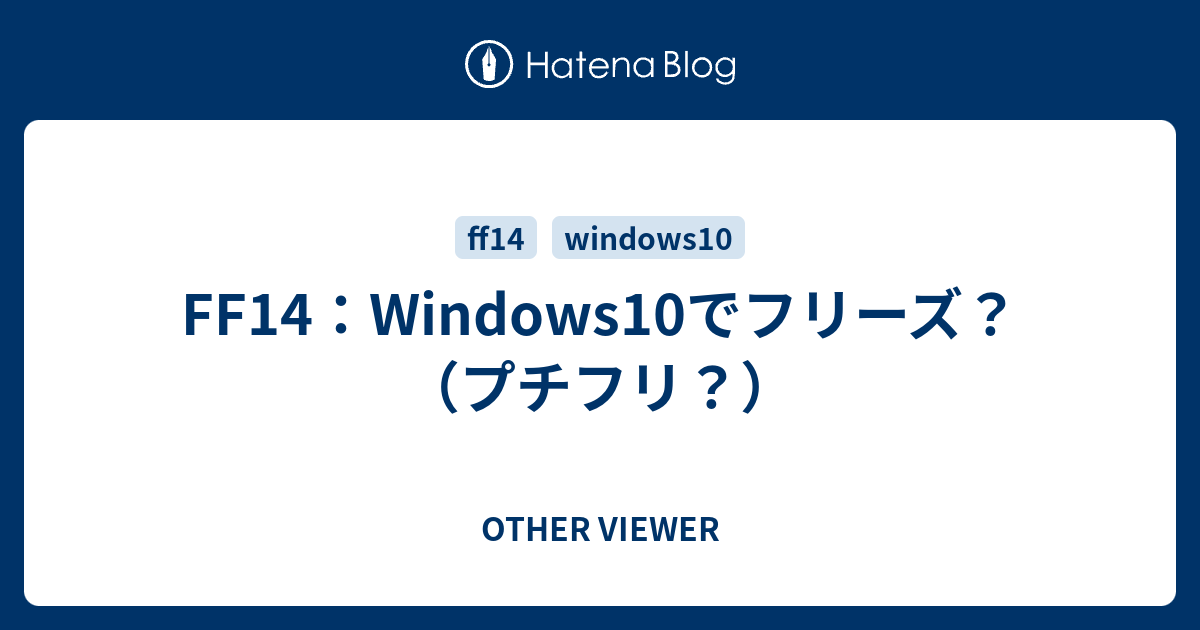 Ff14 Windows10でフリーズ プチフリ Other Viewer