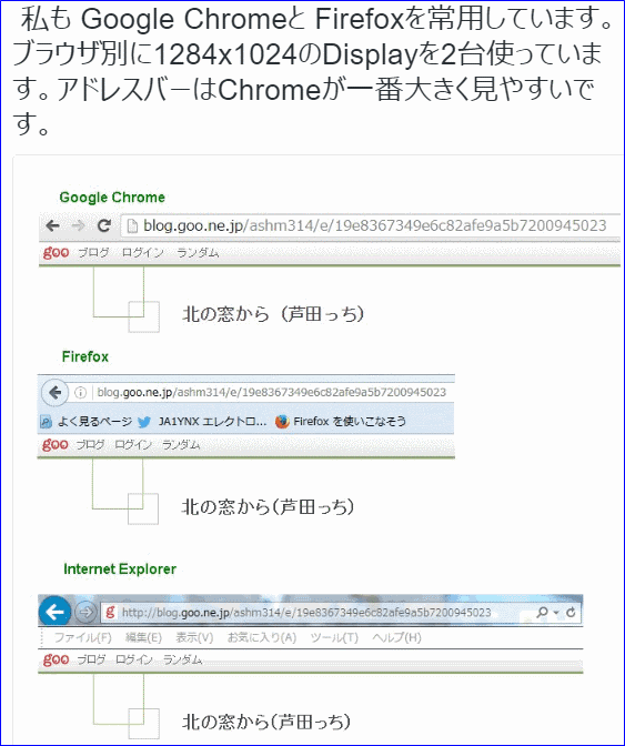 ブラウザー アドレスバーの見やすさ 追記 北の窓から 芦田っち