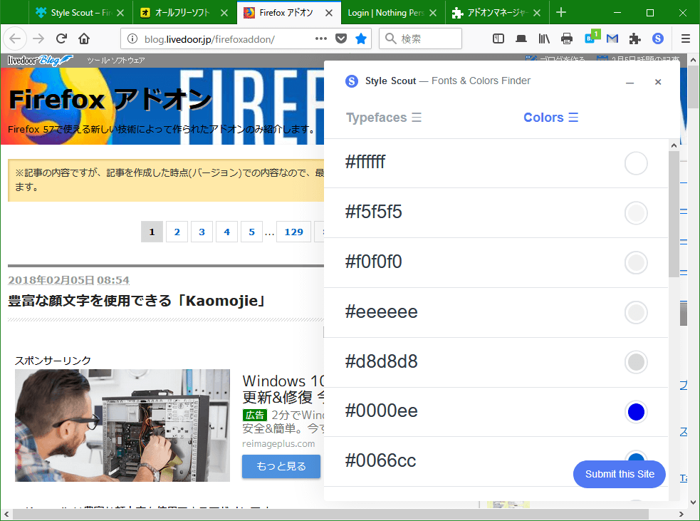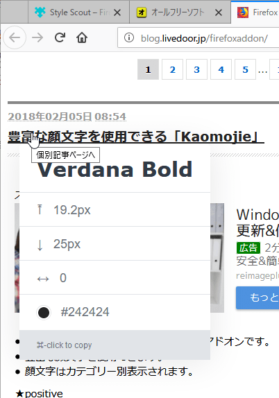 サイトで使われているフォントと色を表示する Style Scout Firefox アドオン
